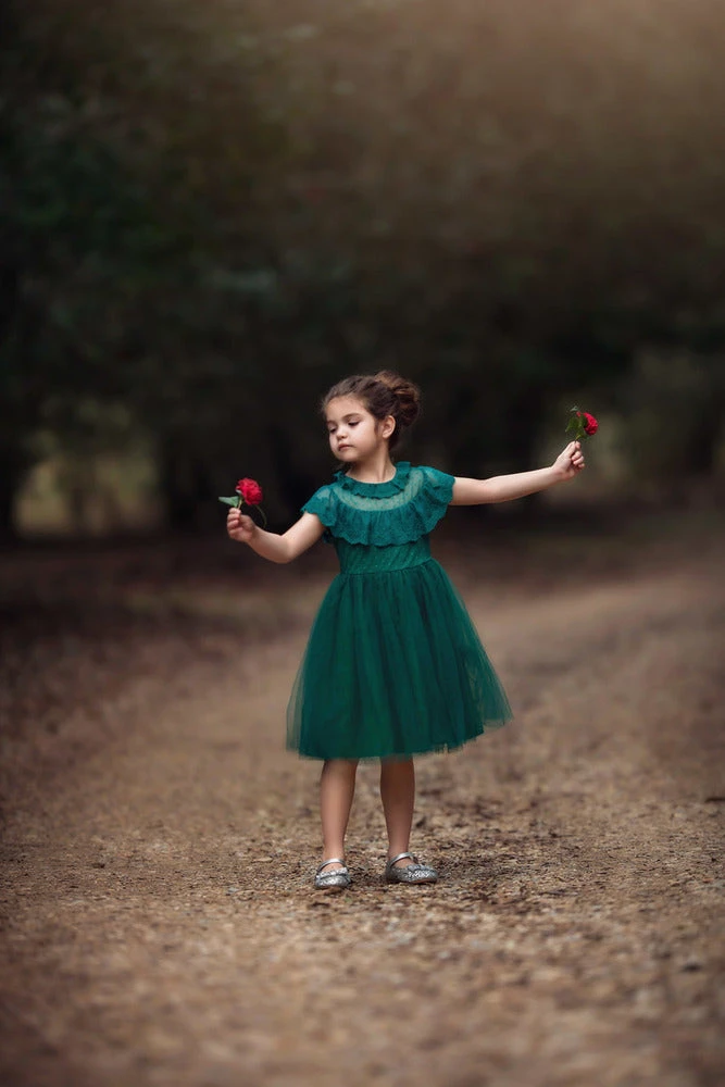 Soft and perfectly elegant for her most special of occasions, the Giovanna dress will have all heads turning. Layers upon layers of tulling grace the skirt of this oh so twirly dress, while a soft flounce of soft lace graces the neckline. This dress is soft and perfectly lined with pure cotton. Back zip. Machine wash, hang dry. 100% poly self, 100% cotton lining.