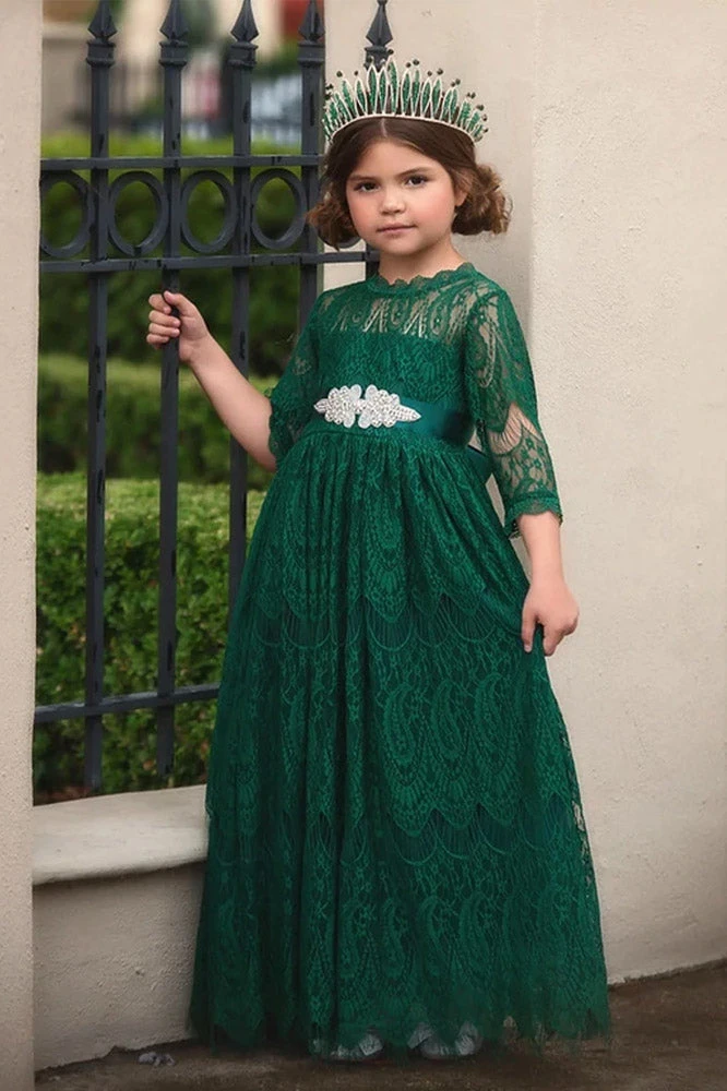 One of our most popular dresses has arrived in a stunning long gown. This vintage inspired lace frock is absolutely gorgeous in person. The color is a dreamy emerald green and photographs amazing. The lace is soft, not scratchy and has a French eyelash edging, creating a perfect touch of vintage whimsy. The dress is fully lined with soft cotton and has a back zipper. The sparkle belt is completely removable and self ties in back for just the right touch of sweetness. 100% poly self, 100% soft cotton lining. Machine wash, hang dry.