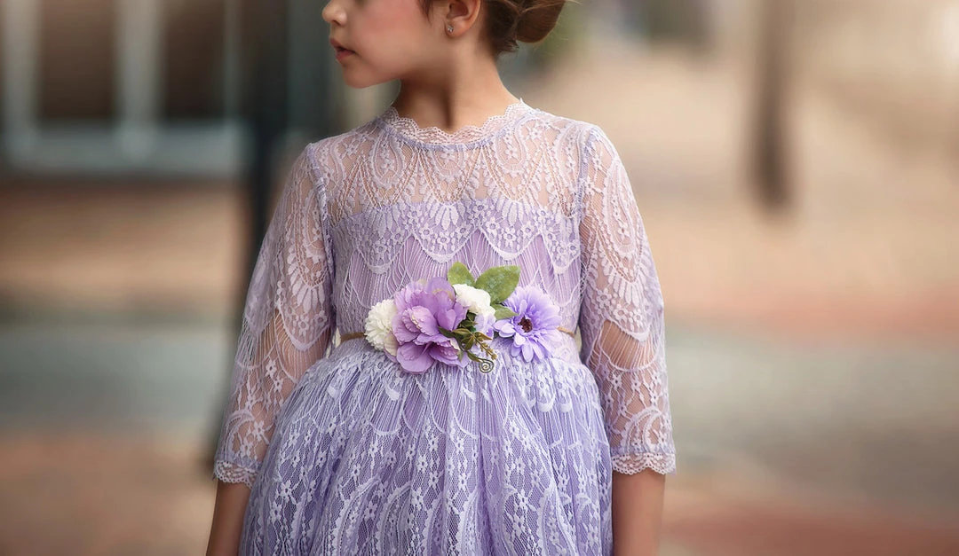 This vintage inspired lace frock is absolutely gorgeous! The color is a dreamy lavender and photographs amazing. The lace is soft, not scratchy and has a French eyelash edging, creating a perfect touch of vintage whimsy. The dress is fully lined with soft cotton and has a back zipper. The floral braided rope belt is completely removable and self ties in back for just the right touch of sweetness. 100% poly self, 100% soft cotton lining. Machine wash, hang dry.