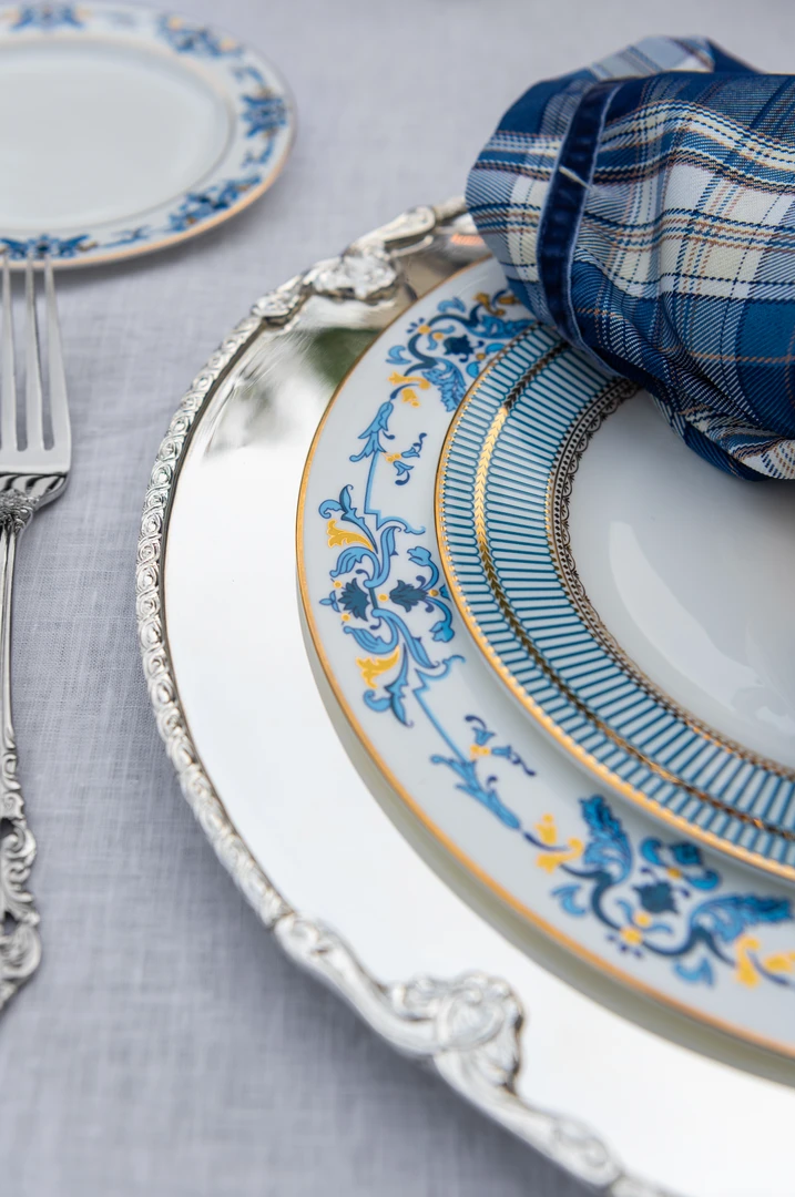Crafted by the same hands that make silver for British royalty, our silver plated charger will be the center of attention! Glamorous edge detailing finishes off this stunning piece, fit for the most discerning of dining rooms. Multiple microns of silver plating make for an incredibly durable and valuable piece, you won’t believe you paid so little for such luxury. 13″