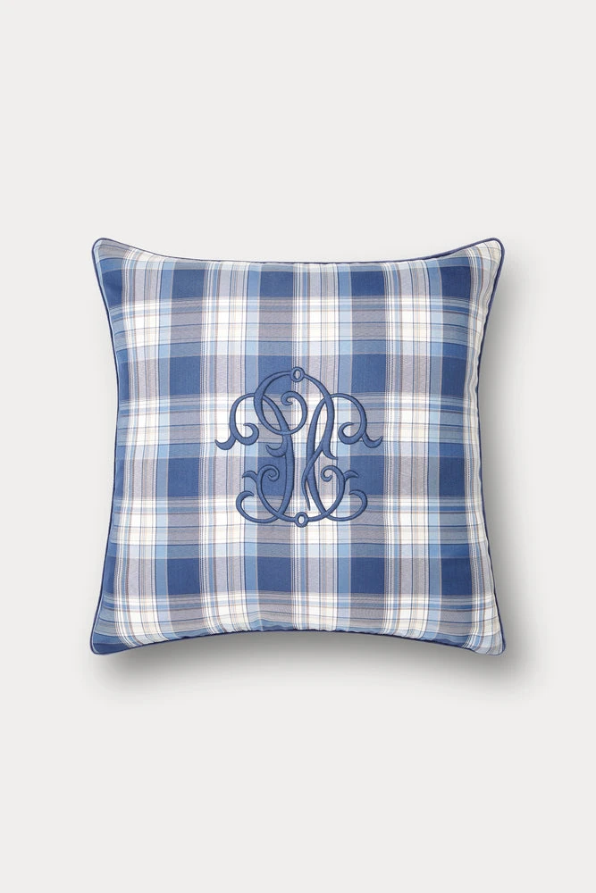 A timeless addition to your home, this blue plaid pillow is graced with a stunning monogram style embroidery.
