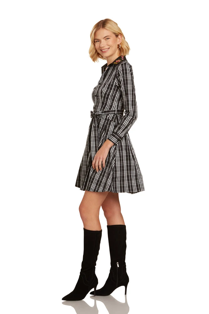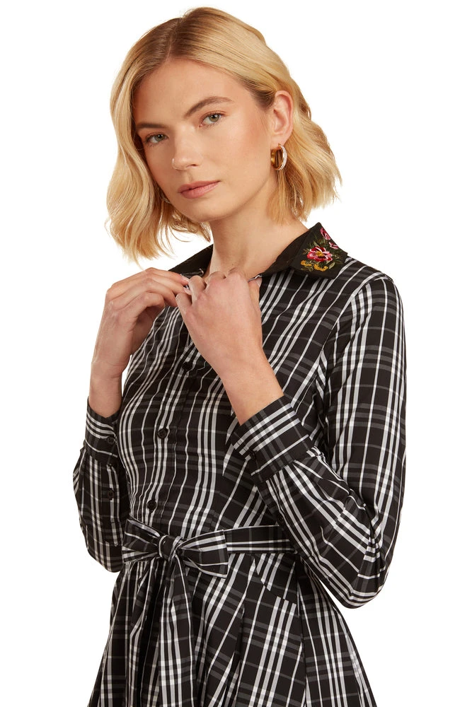 This stunning black dress has a gorgeous floral embroidered collar, which is the star of the show!