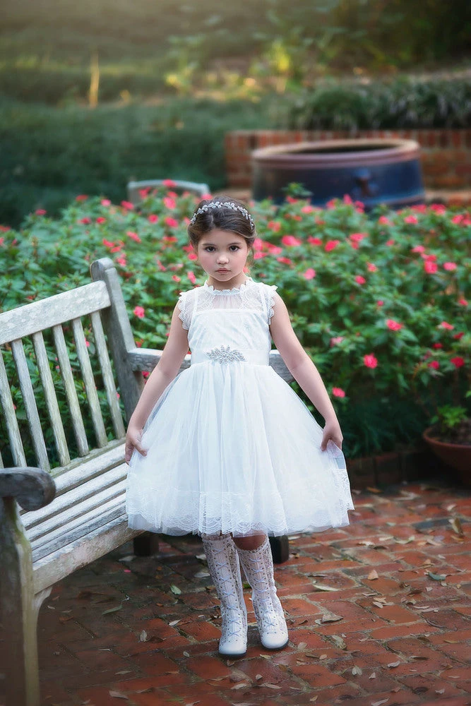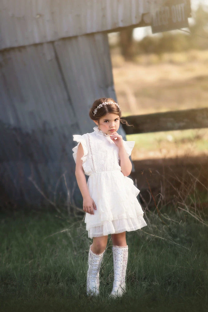 Our most amazing boot to date, these lace boots are to die for! This sheer lace boot has so many details, you will be wanting a pair for yourself! Lace details and chic metal studs make up the front boot, while a side zip makes getting them on and off super easy. The lace is soft and not scratchy. These are so darling with our dresses, truly a photographers dream. Lace & PU upper, rubber sole, side zip.