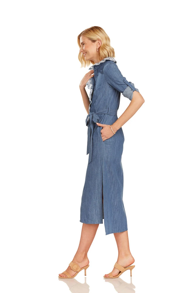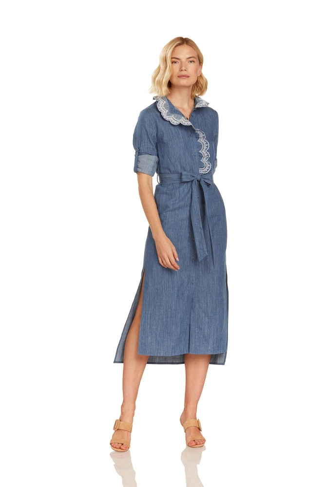 This button front maxi dress is a showstopper! The collar comes complete with soft vintage lace embroidery, beautifully framing the face.